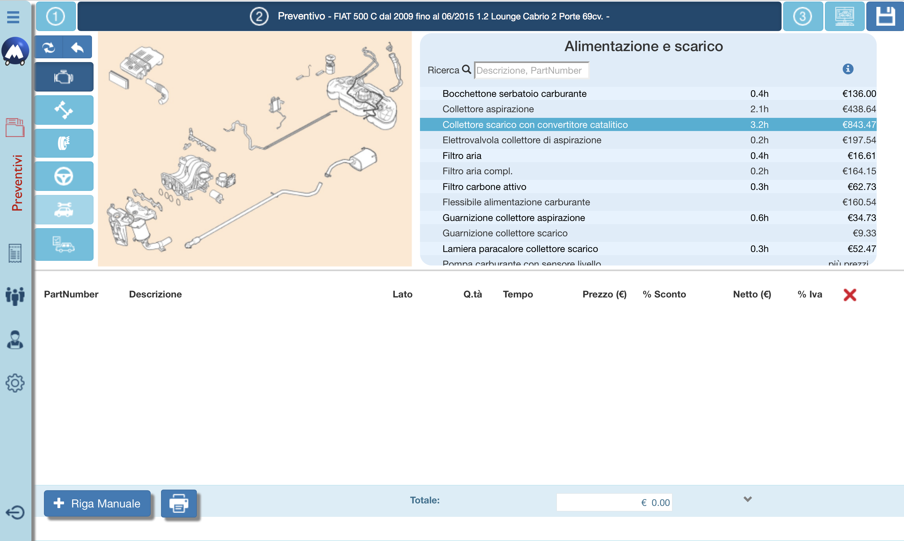Grazie alla nuova versione avrai a disposizione le potenzialità della banca dati Techdata con in aggiunta un modulo per la preventivazione e un vastissimo catalogo ricambi.