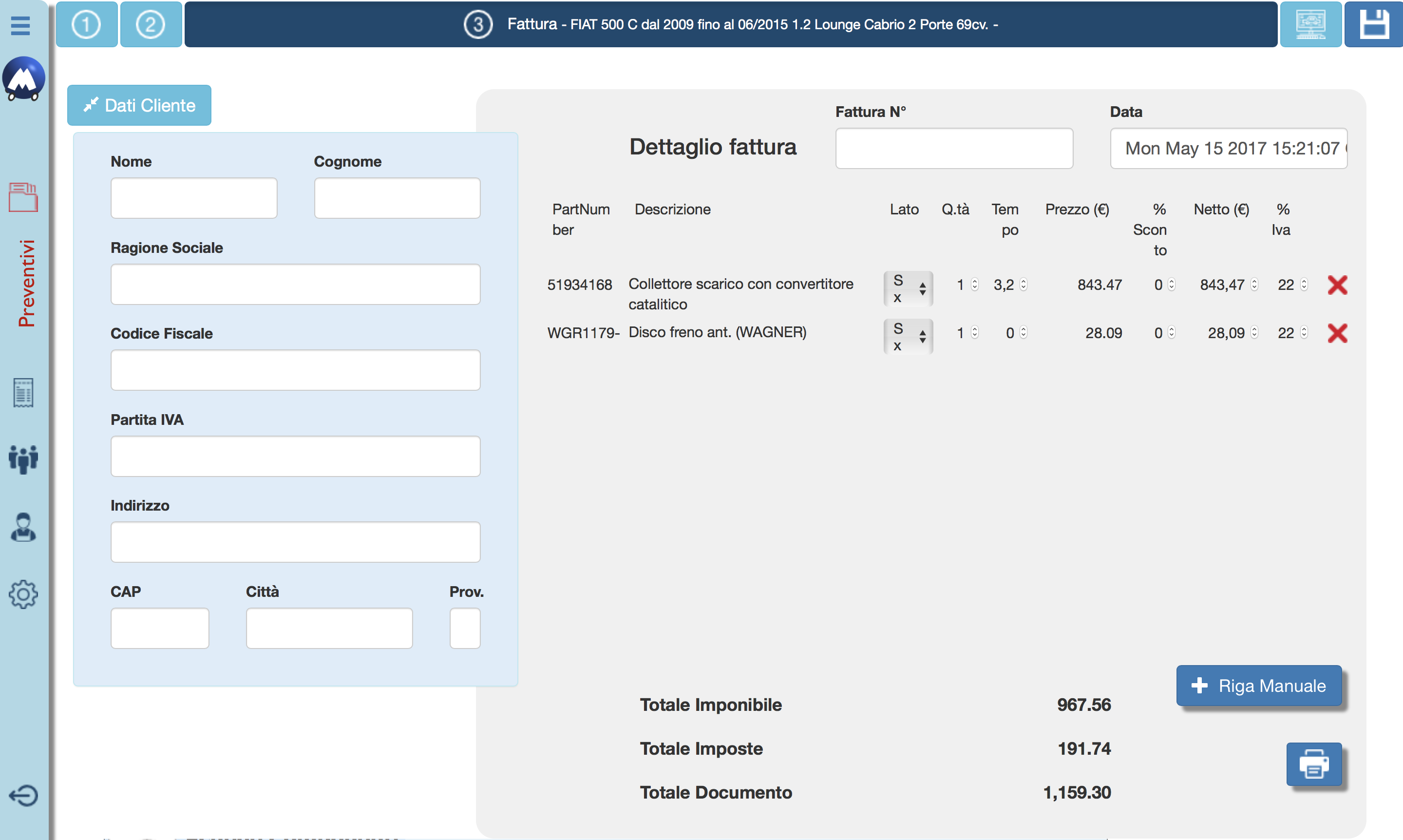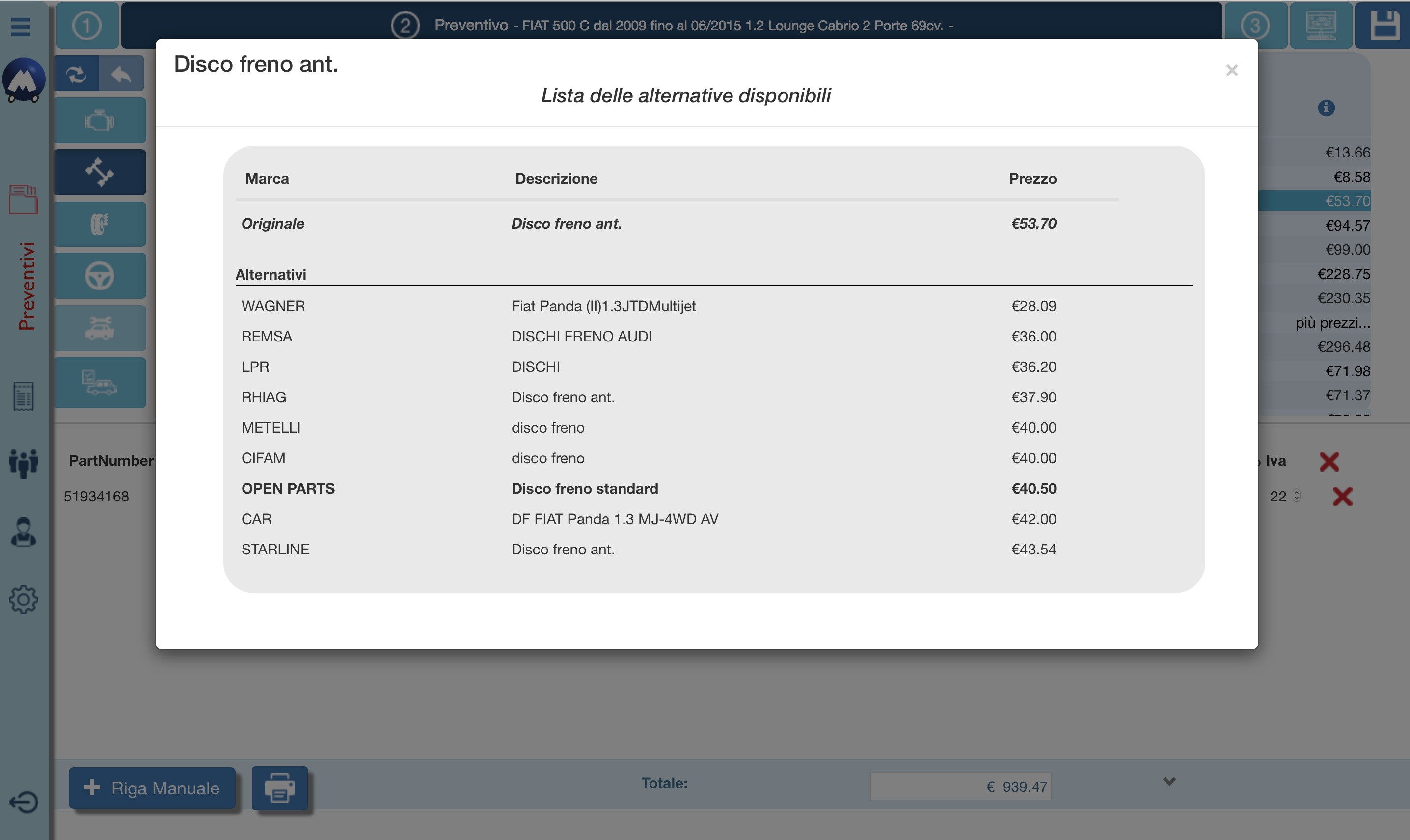 Con pochi click potrai immediatamente compilare un preventivo di spesa e consegnarlo al cliente.